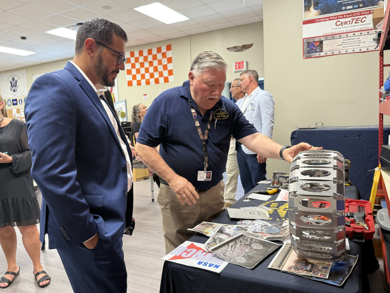 At Eau Gallie High School’s Aviation Center, Commissioner Kamoutsas toured classrooms and an aircraft hangar where students gain hands-on training in aerospace technology and maintenance. Faculty and students highlighted the program’s role in preparing graduates for high-demand careers in Florida’s growing aviation and space industries.